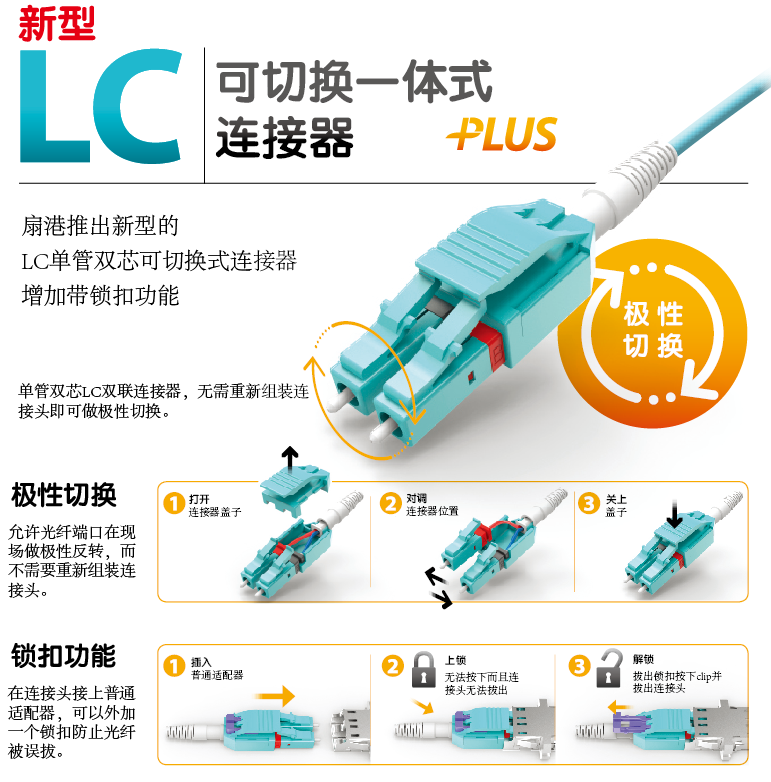 SENKO可切换双芯LC连接头的设计,独一无二,可用于2.0mm或3.0mm双芯圆缆,而不是采用传统的拉链式双芯光缆 ,更能迎合紧凑型设计的需求。